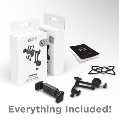 Comes with a complete install kit that includes: 1x Metal Handle bar, 1x Small 2.4 Inches Metal Connector, 1x Phone Cradle, 2x Screws, 1x Wrench, and 2x Metal plates with our signature 12-month warranty, and dedicated customer service to make sure you’re always mounted for success.