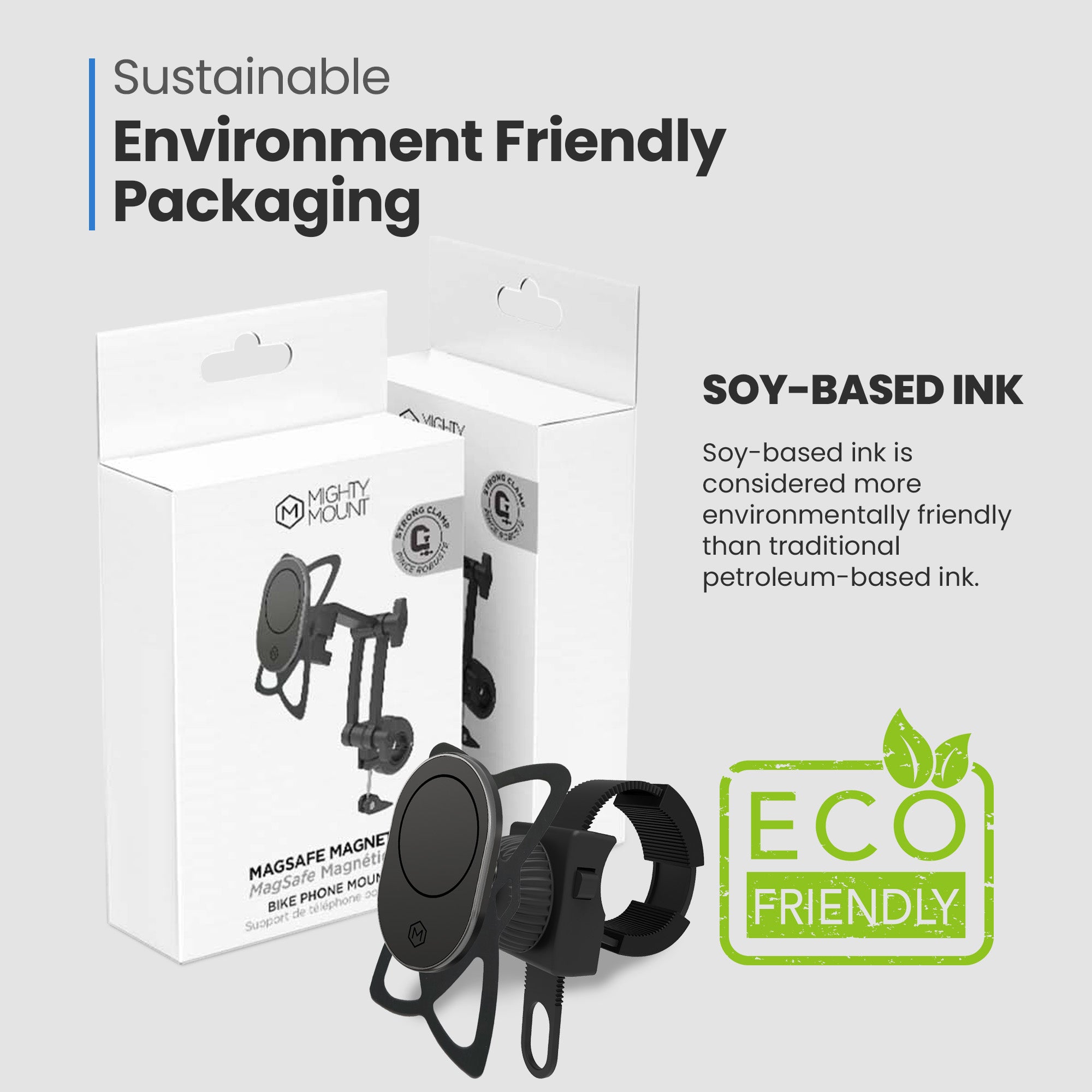 Inside the package, you’ll find everything you need to start using your mount right out of the box. It includes the main MagSafe mount with an adjustable clamp that fits pipe diameters from 0.5" to 2", ensuring a secure grip on a variety of setups. All of this comes in thoughtfully designed, eco-conscious packaging made with recyclable materials — because we believe high-performance products shouldn’t come at the cost of the planet.