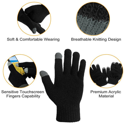 Touch Screen Winter Gloves (One Size / Unisex) - Black